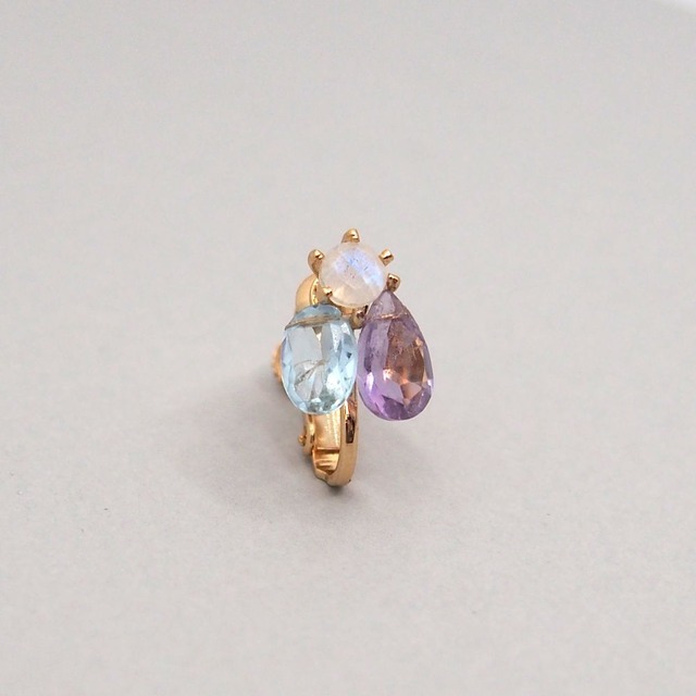 Topaz-Amethyst 3粒イヤリング 片耳売り
