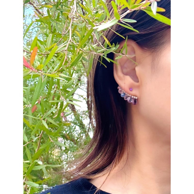 XSORIのアイコンデザインの耳に添う天然石のビジューピアス。