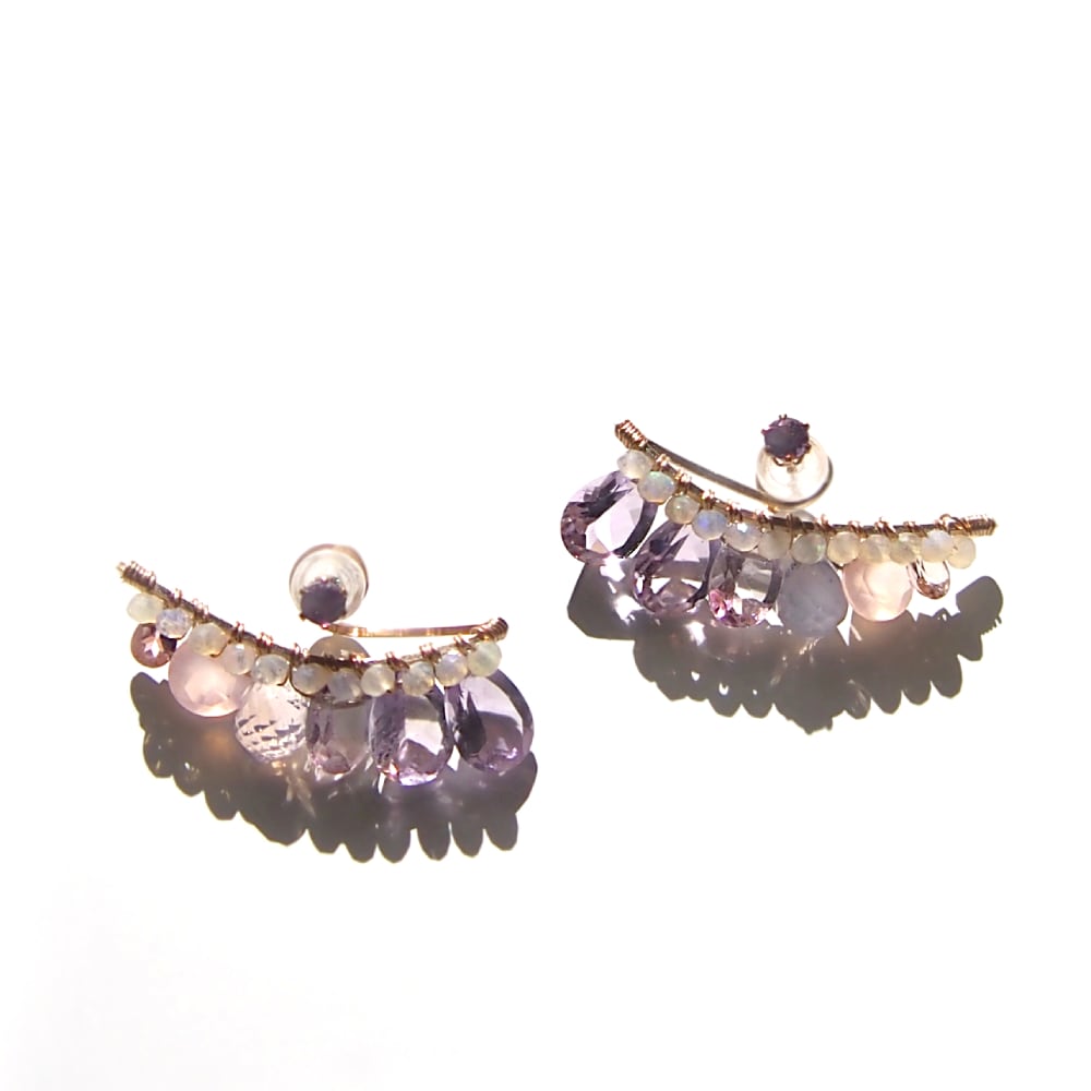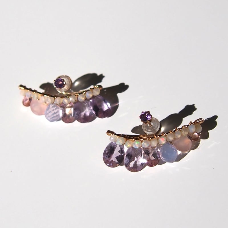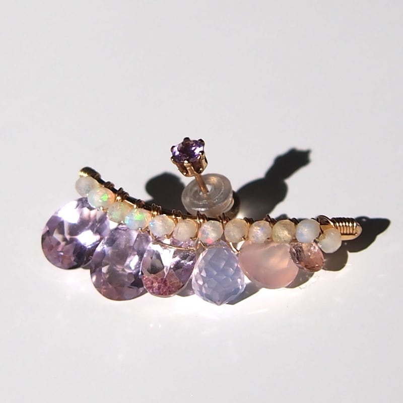 耳たぶの下に沿うようにgoldのバーと小さなオパールをグラデーションカラーで使用。