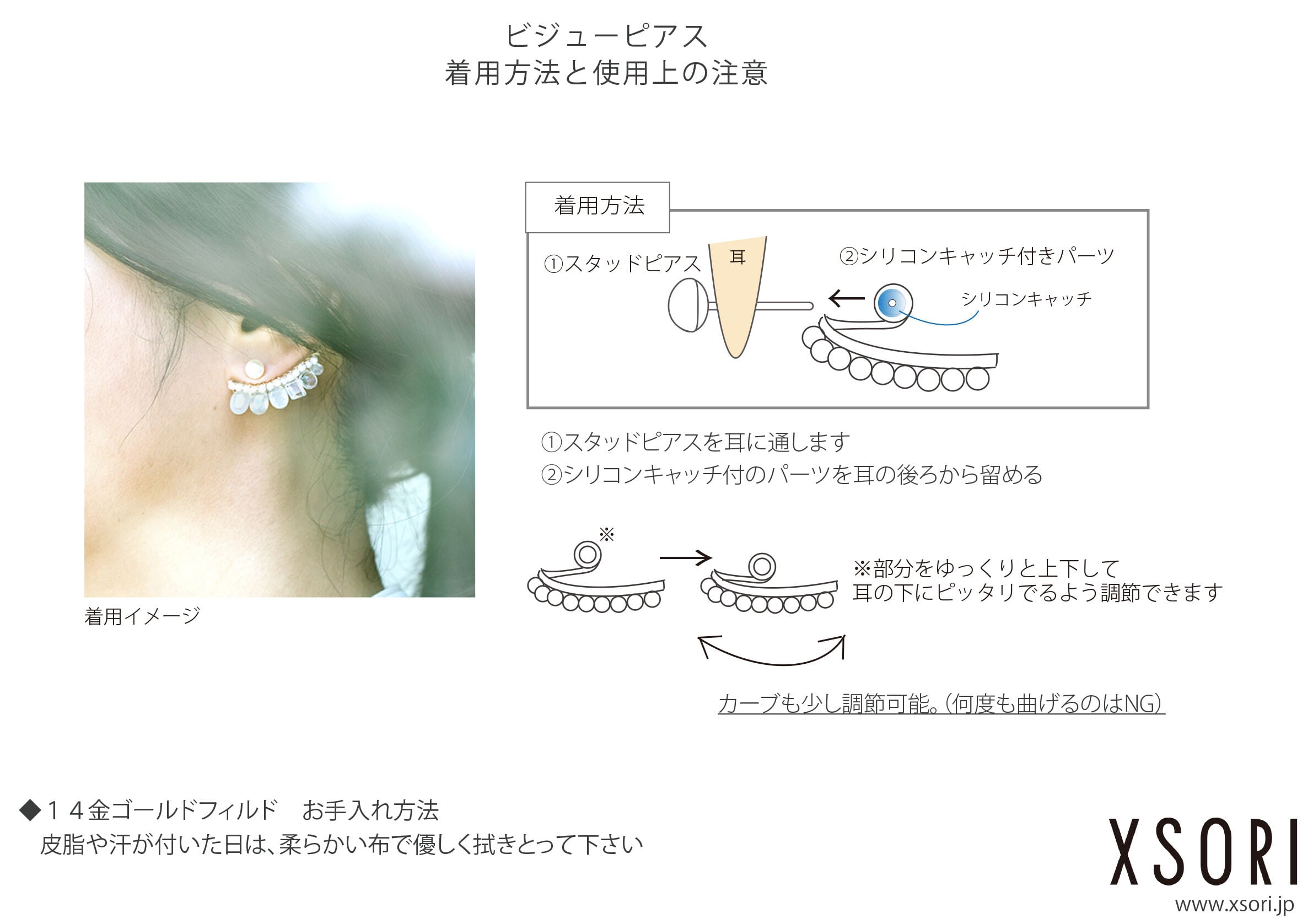 耳に沿うラインを描く、XSORIオリジナルのデザイン。