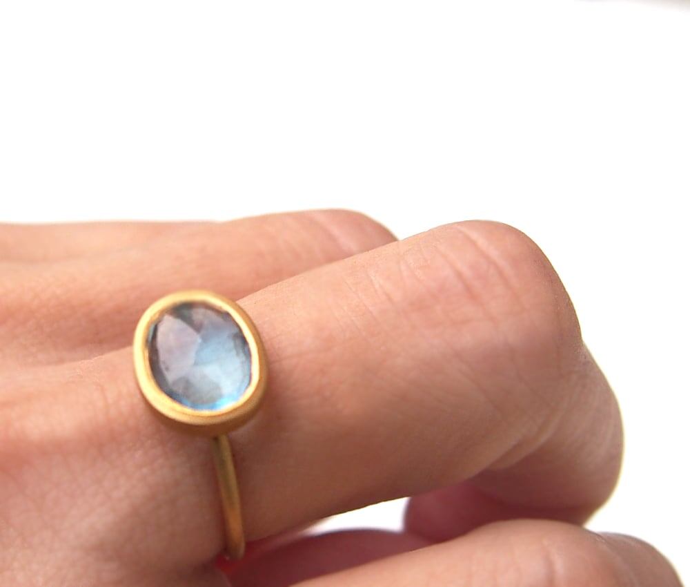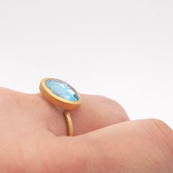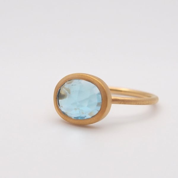 美しい石の魅力を生かすため、余計なデザインは入れずシンプルに石留しています。