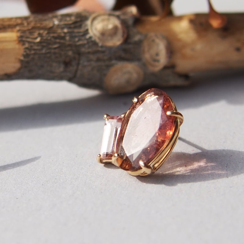 今回の石はブラウン~オレンジ系の色が美しい大粒。内包物やクラックが多少見られますが、それを含め天然石らしい大変魅力的な石です。