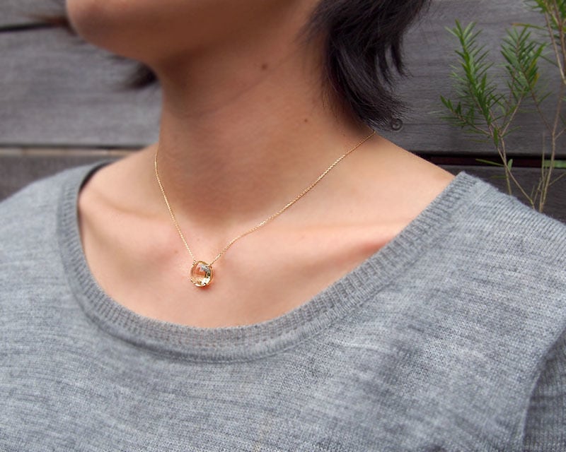 ラウンドの両面チェッカーカットが美しく胸元に浮かびます。
