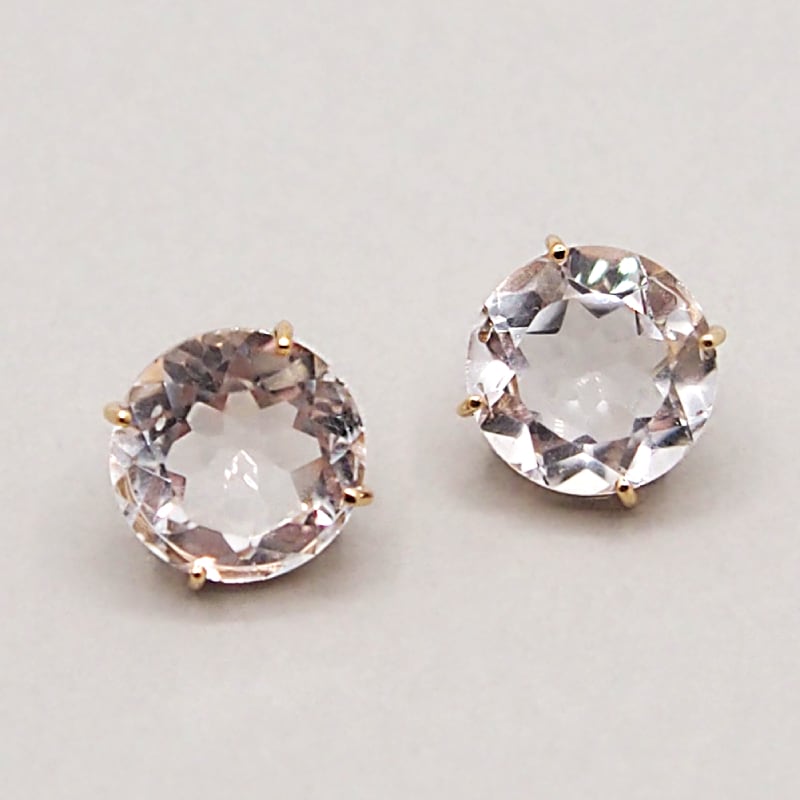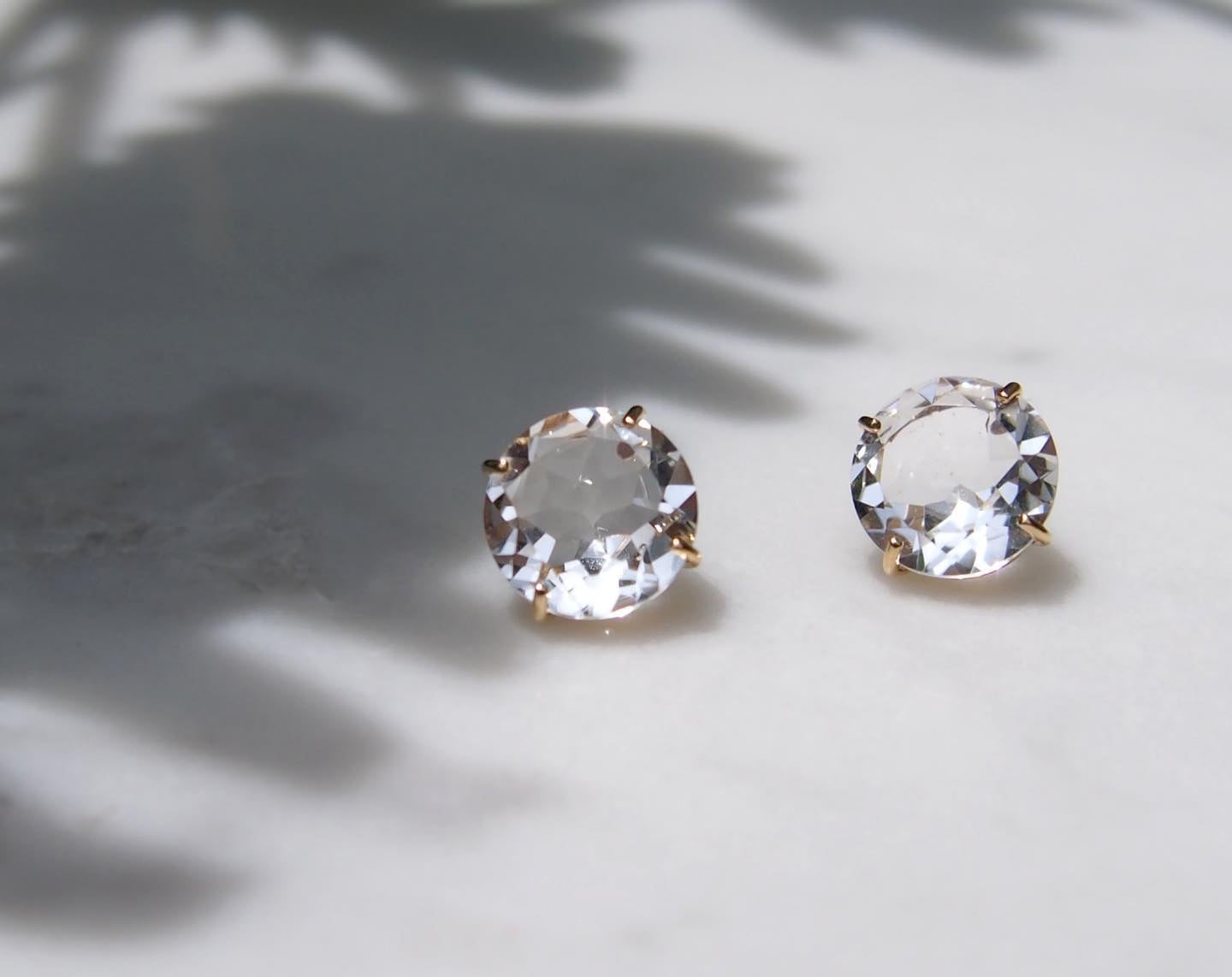 クオーツ ラウンドカットの美しいワンポイントピアス。