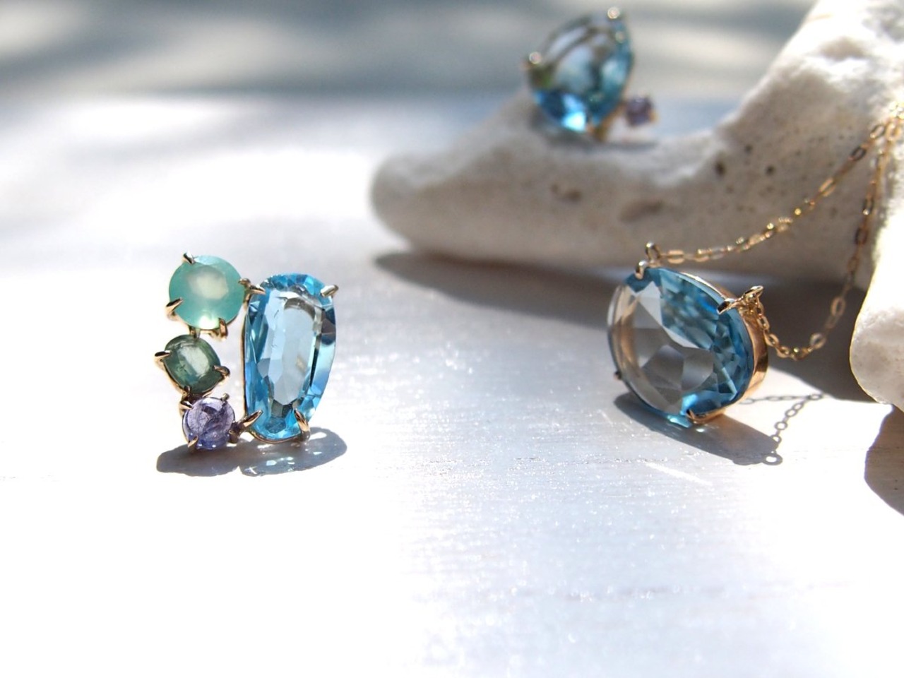 ただ美しいだけではなく、個性的な1つをセレクトし、色の響き合いを大切に小さな宝石も厳選しました。