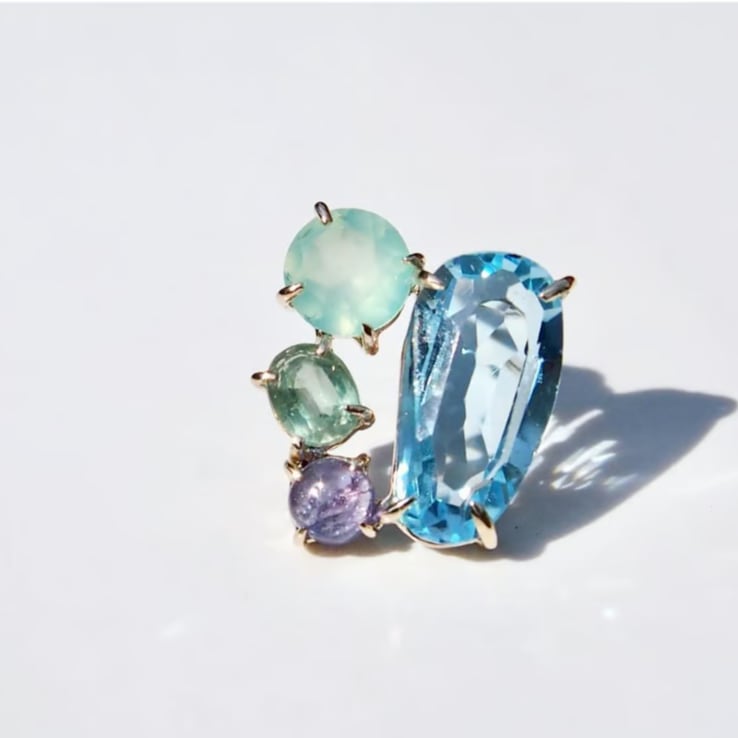 美しい有機的なカットのブルートパーズに、小さな宝石を組み合わせました。