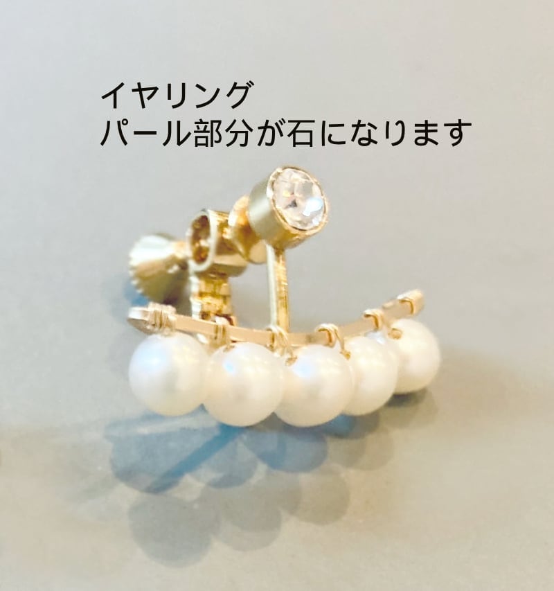 その下に天然石が下がるデザインで華やか。