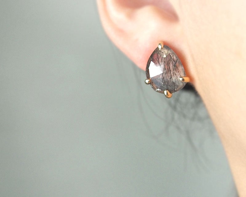 ■スモーキークオーツのスタッドピアス