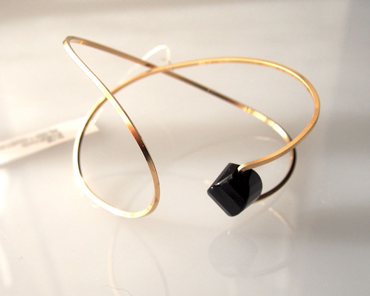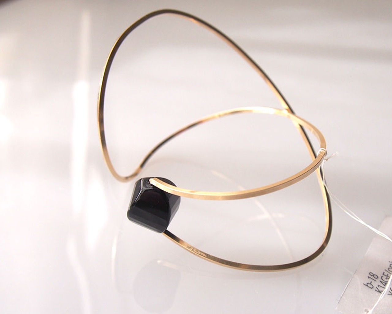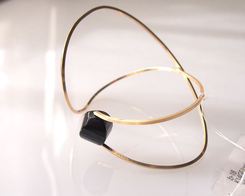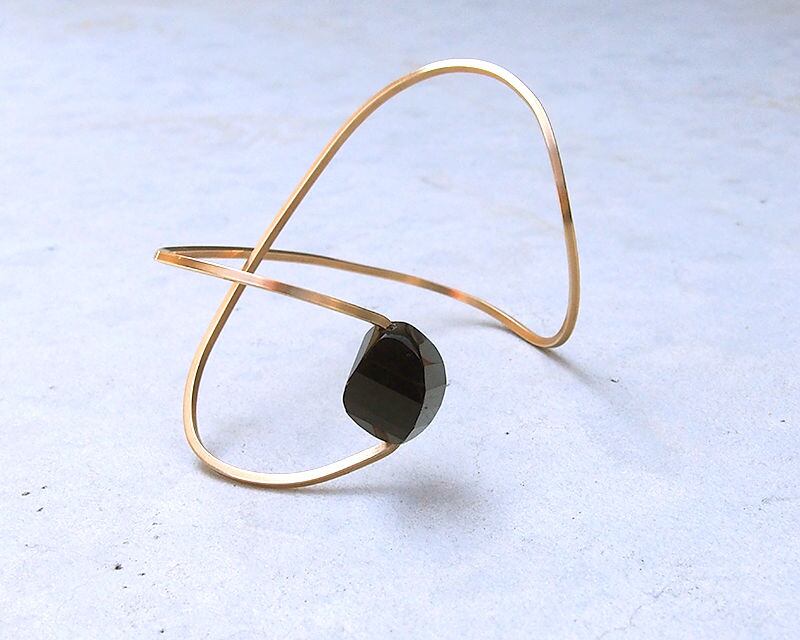 スクエアのワイヤーをクロスさせて石を留めた、カッコいい印象のバングルです。