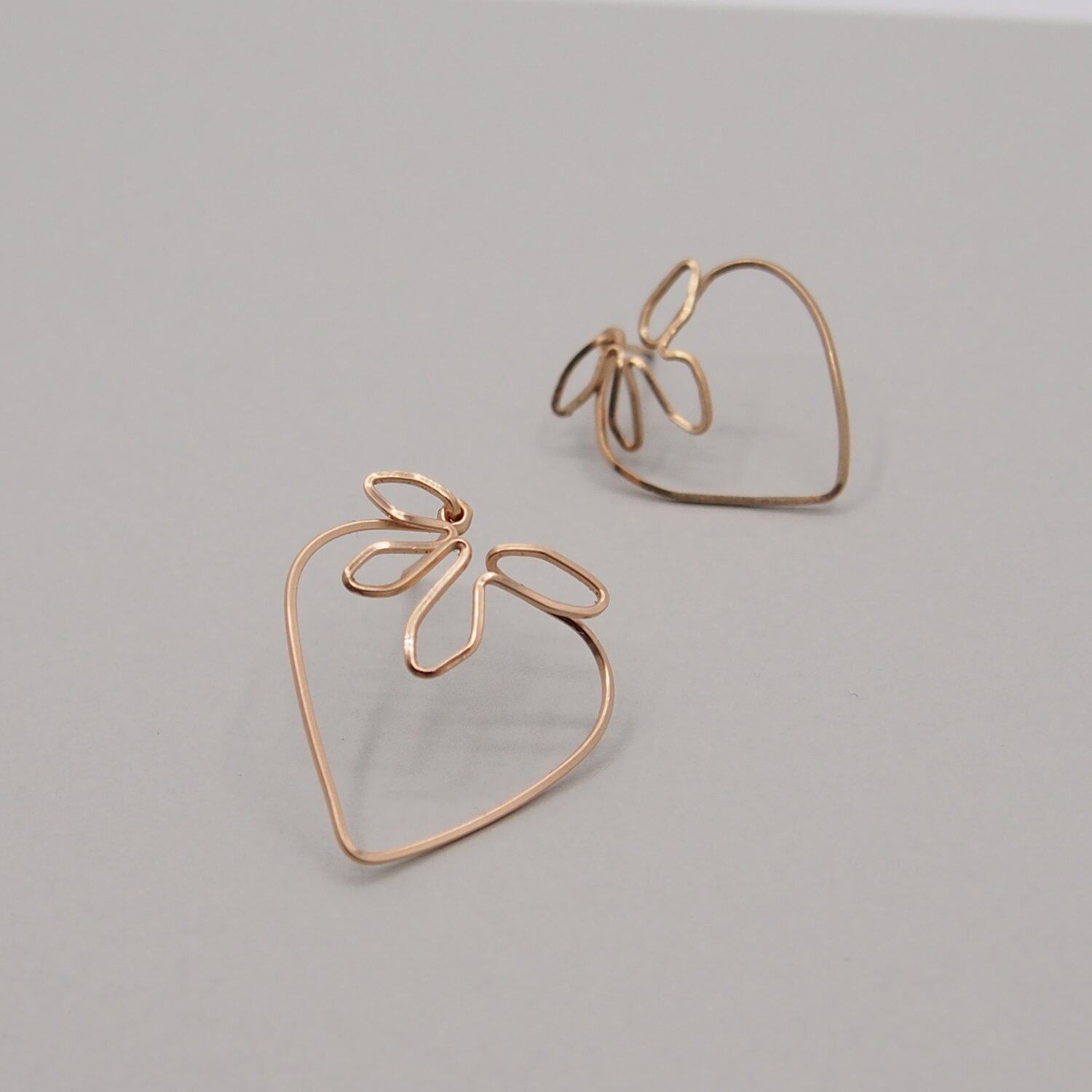 ワイヤーには若干作業跡があり、また一筆書きのように作成する為、ワイヤー同士が重なった部分は少し浮いたような着け心地になります。