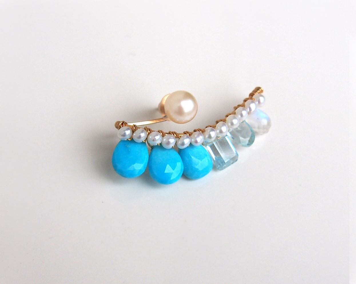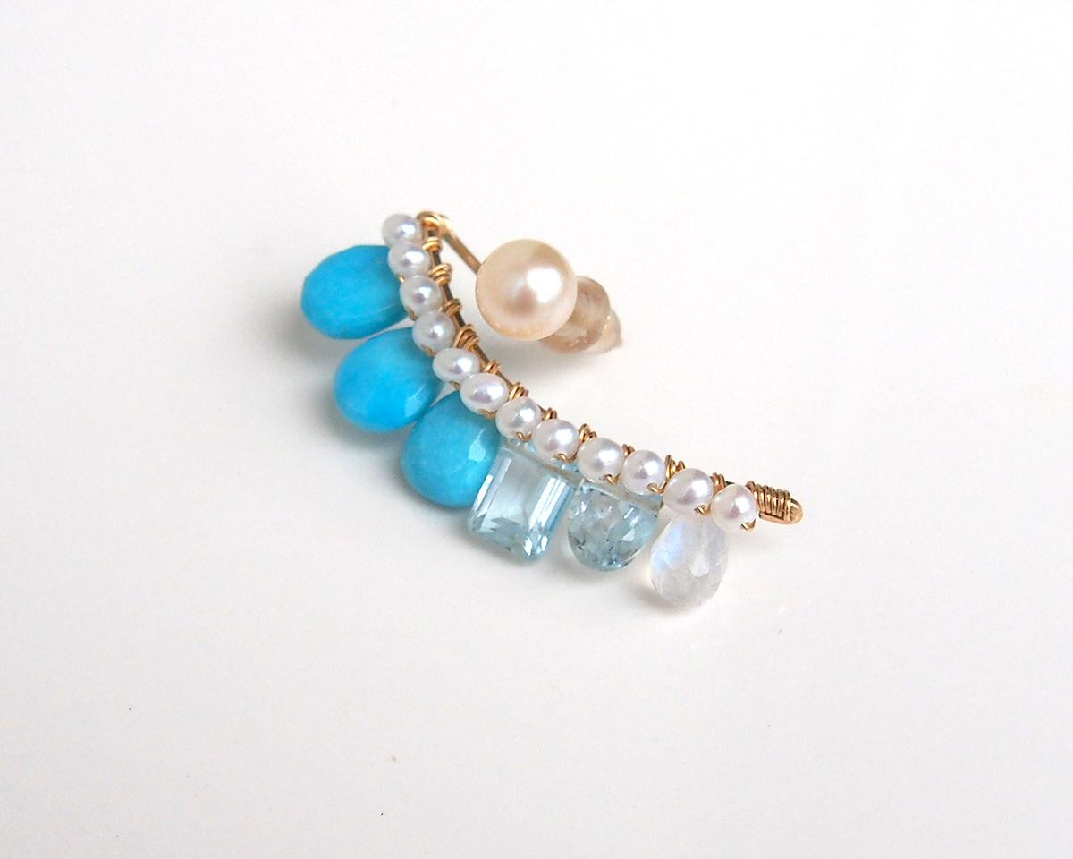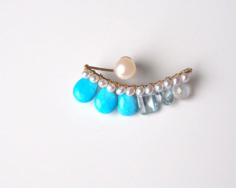 その下に淡水パール、ターコイズ、ブルートパーズ、ムーンストーン を付けています。