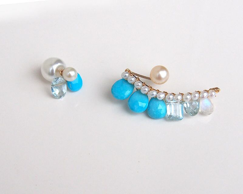 両耳セットでも勿論素敵ですし、アシンメトリーでセット石のビジューピアスを着けても素敵です。