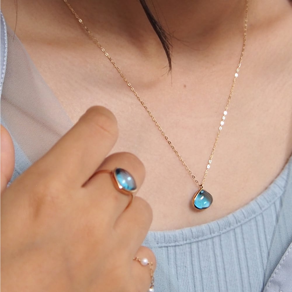 Set - Drop Ring & Necklace - Blue topaz