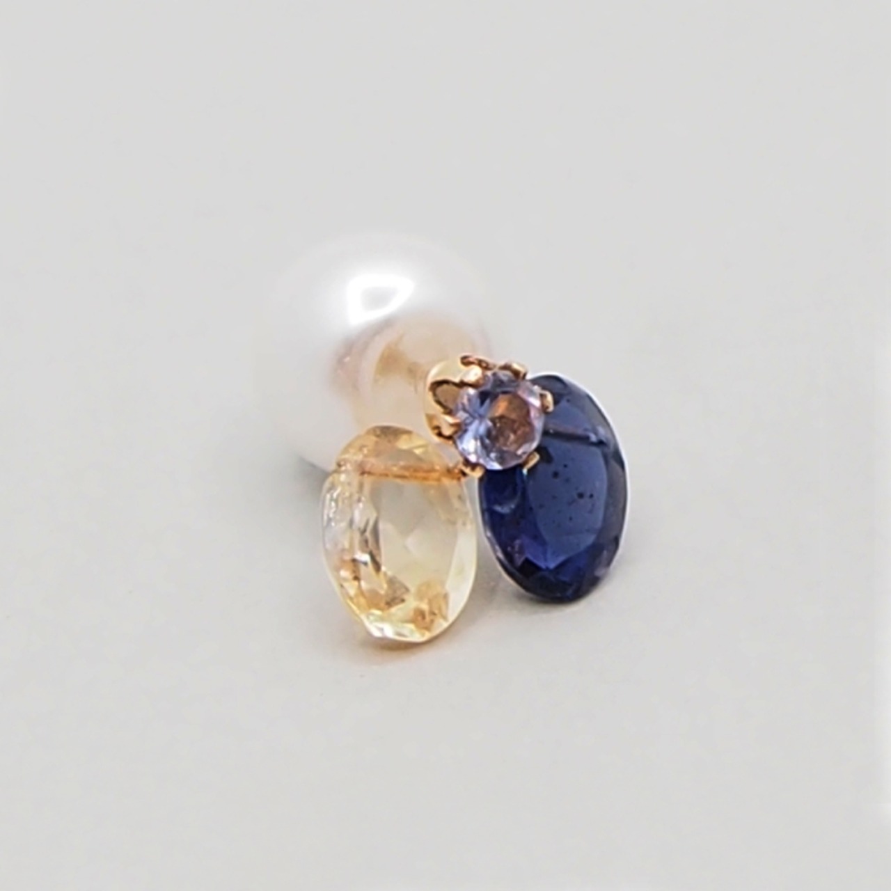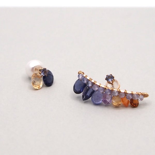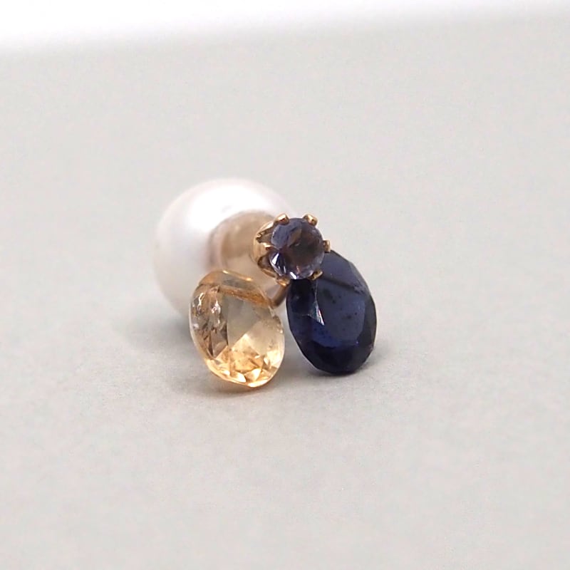 2WAY - 3粒片耳ピアス-Iolite/Citrin